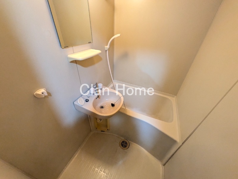 玄関直ぐにバスルームがあり洗面台付きのユニットとなっております。バス・トイレ別ってだけでかなり暮らしやすさがあると思います。シャワーで済ましたい方はもちろん、毎日お風呂に浸かりたい方でも問題ないバスルーム。洗面台も朝の身だしなみを整えるのに便利ですよ。