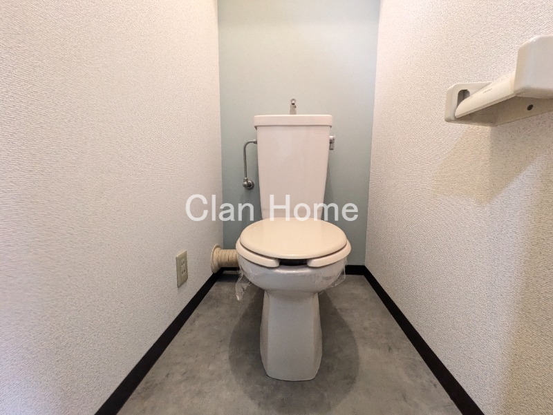 ワンポイントクロスが特徴的でトイレの雰囲気も明るく陽気に過ごせそう。床の大理石調のデザインもこだわりがあっていいと思います。また、コンセントもついており、ウォシュレットを設置することが出来ます。ただのトイレですがデザイン性にもこだわっているところがオススメポイントとなっております。