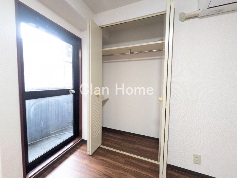洋室に1カ所大きなクローゼットがついていますので洋服や小さめの洋服ダンスも収納することができ、上部には棚がついていますので普段使わない物も収納していただけます。両開き戸で出し入れもしやすいのが特徴で、一人暮らしの単身の方であれば十分な収納になっております。収納があるだけでお部屋の使い方にも余裕ができますよ。