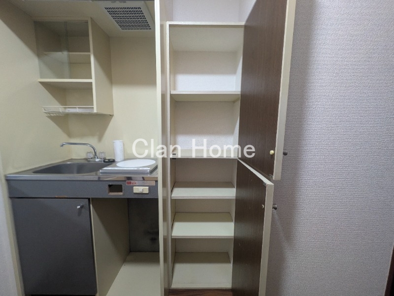 キッチンはコンパクトなIH1口のシステムキッチンで自炊したい方には少し使いにくさもありますが、簡単な自炊は難なく出来そうです。冷蔵庫を置くスペースはキッチン周りにはないので、お部屋に設置していただく事になりますが、お部屋の広さがありますので問題ないかと思います。