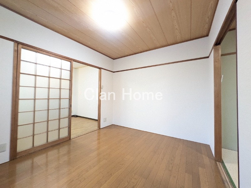 和室のお部屋ですがクローゼットがついております。とても大きなクローゼットで洋服も、もちろん掛けて収納が出来るのですが奥行きがあるのでコンパクトなタンスなども併せて収納しておけば、使い勝手もいいと思います。両開き戸で収納した中身も見やすく、探しやすいのもオススメポイント。お部屋の広さと収納の多さがあればお部屋もすっきりとして暮らしやすいと思います。